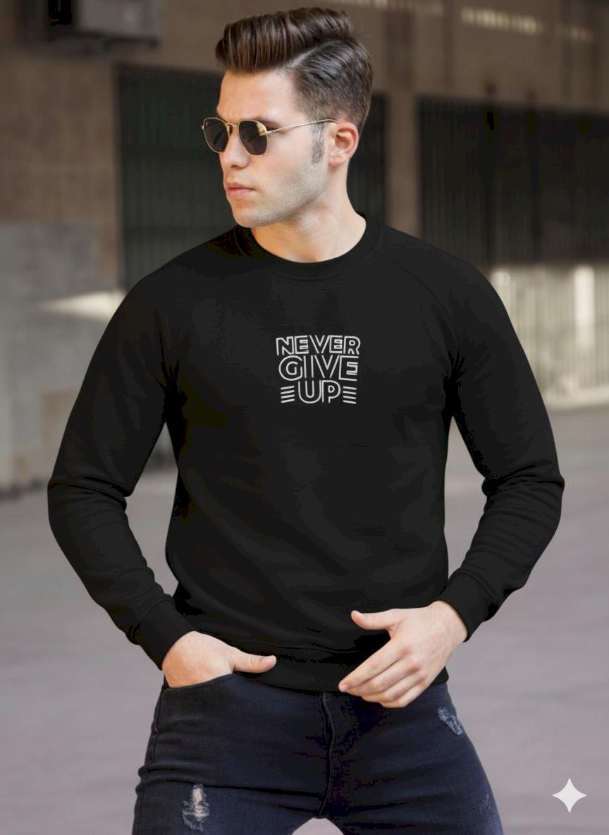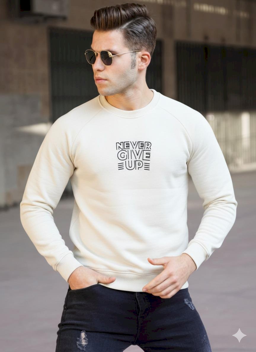 Never Give Up Baskılı Sweat